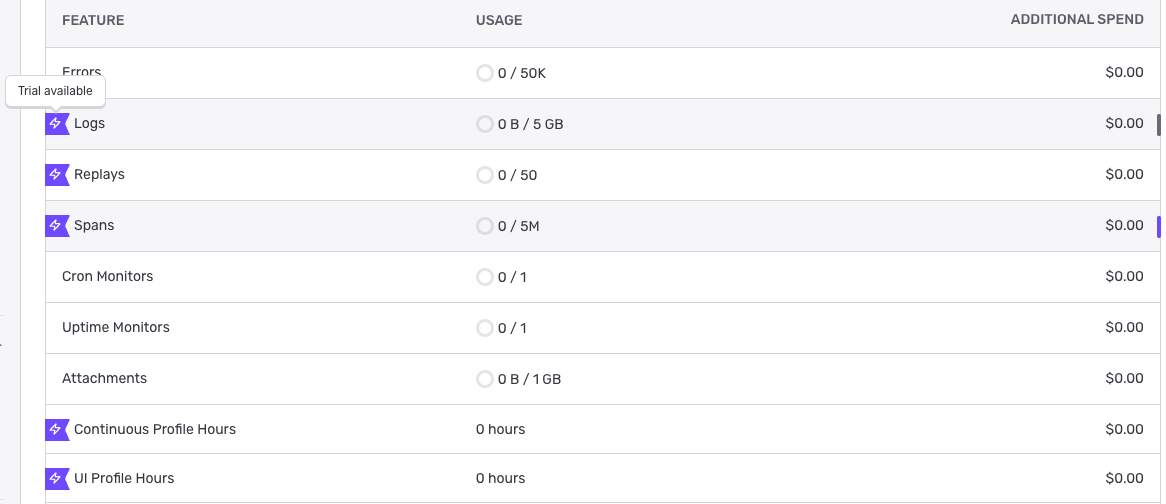Anyone who's on a Free, Team, or Business plan can initiate a product trial directly from the Sentry UI, either through the Subscription page, or the Explore (→Traces, Logs, Profiles, Replays).