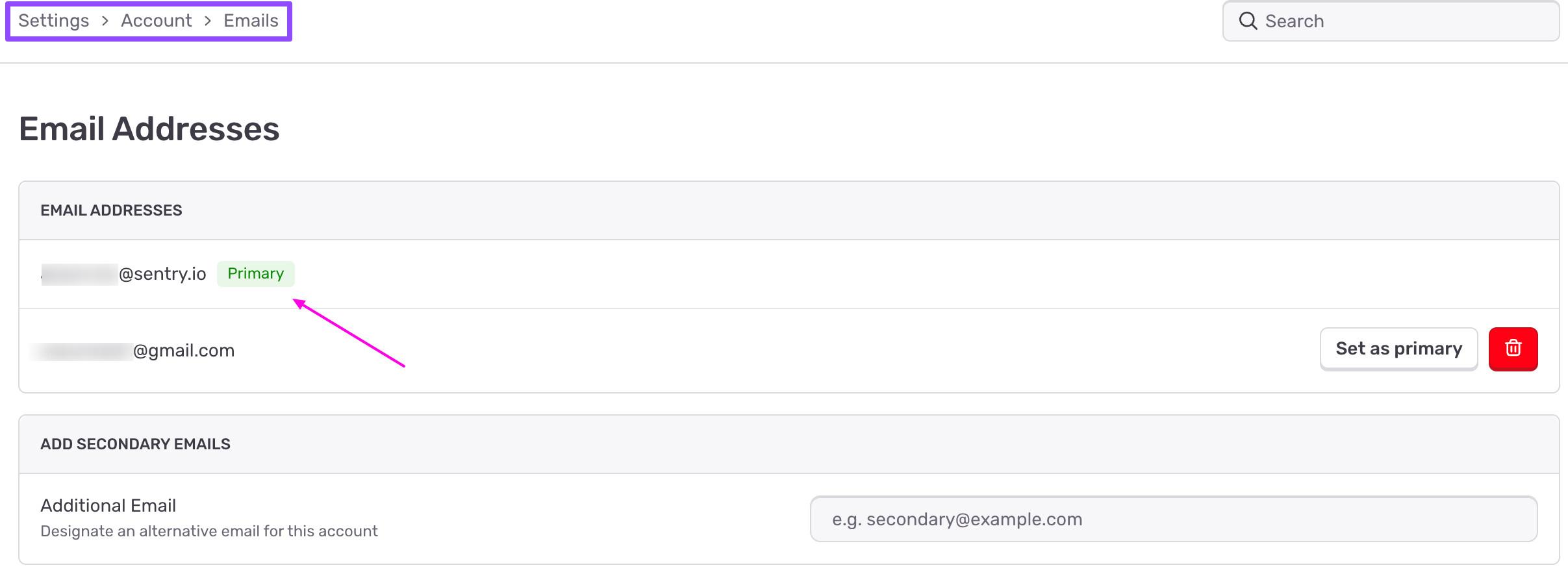 However, if you no longer have access to the primary email or you’re still having trouble, please contact Sentry Support and we’ll help with the next steps.