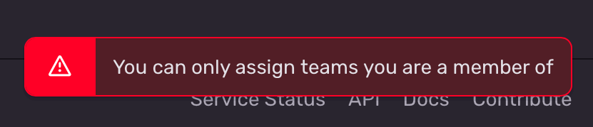 I'm trying to assign an issue or an alert rule to a team but I get the following error in the UI: You can only assign teams you are a member of